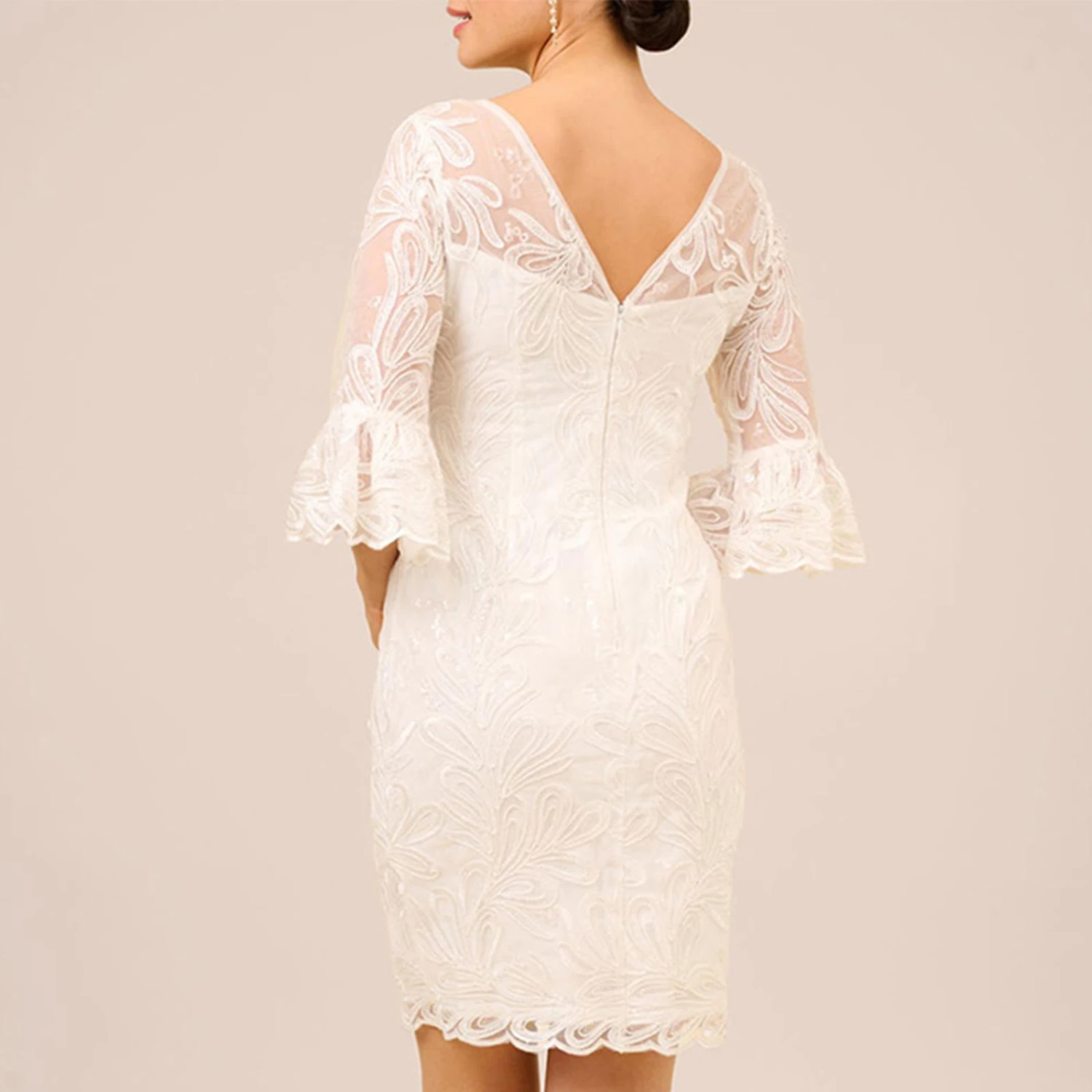 Adrianna Papell Ivory Ribbon Embroidery Sheath Dress