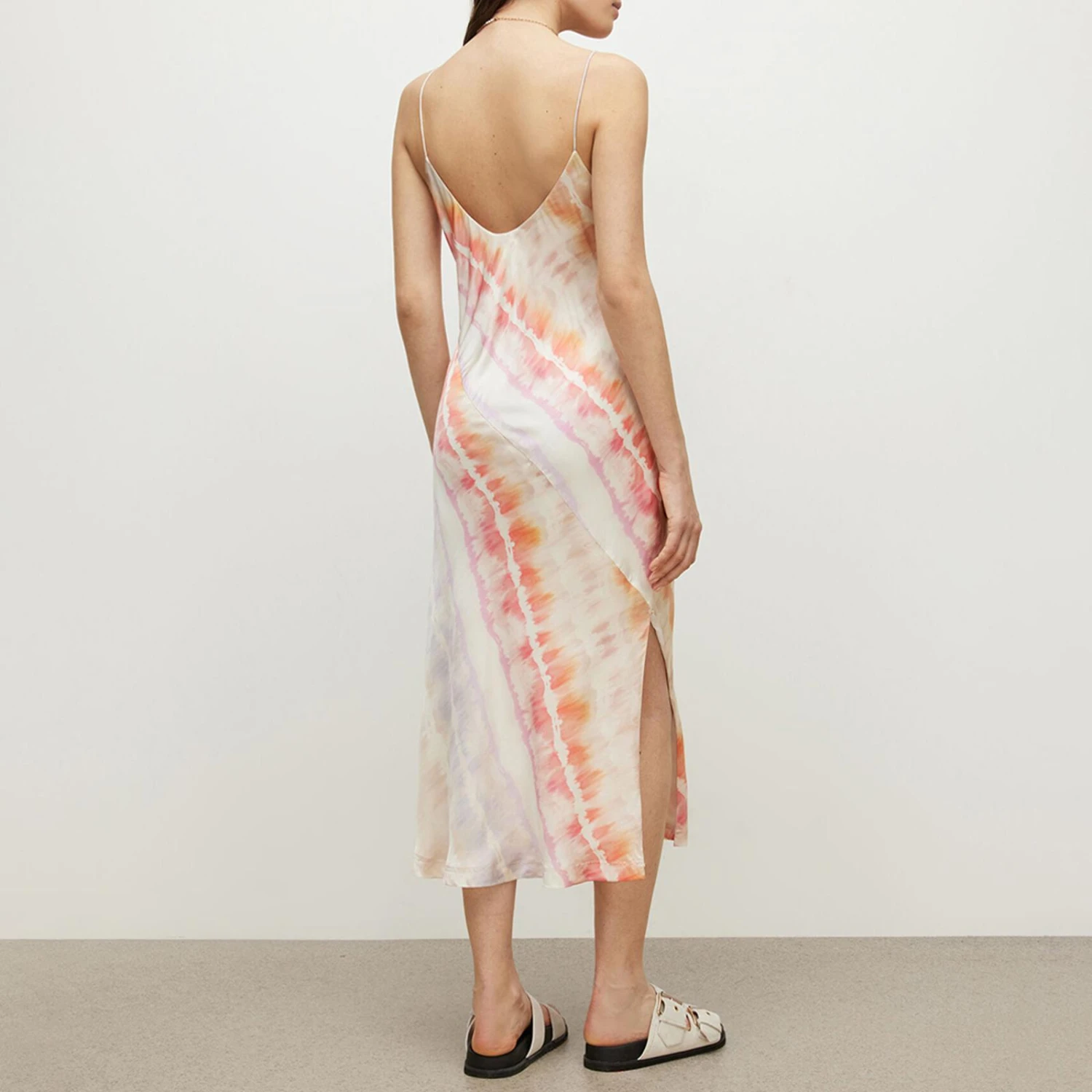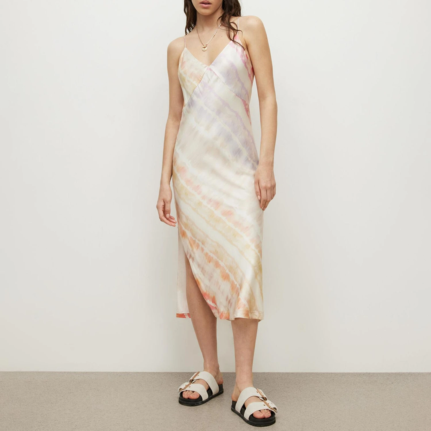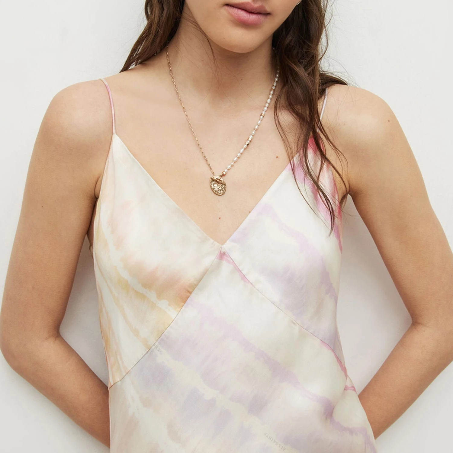 AllSaints Pink Melody Printed Silk Blend Slip Dress