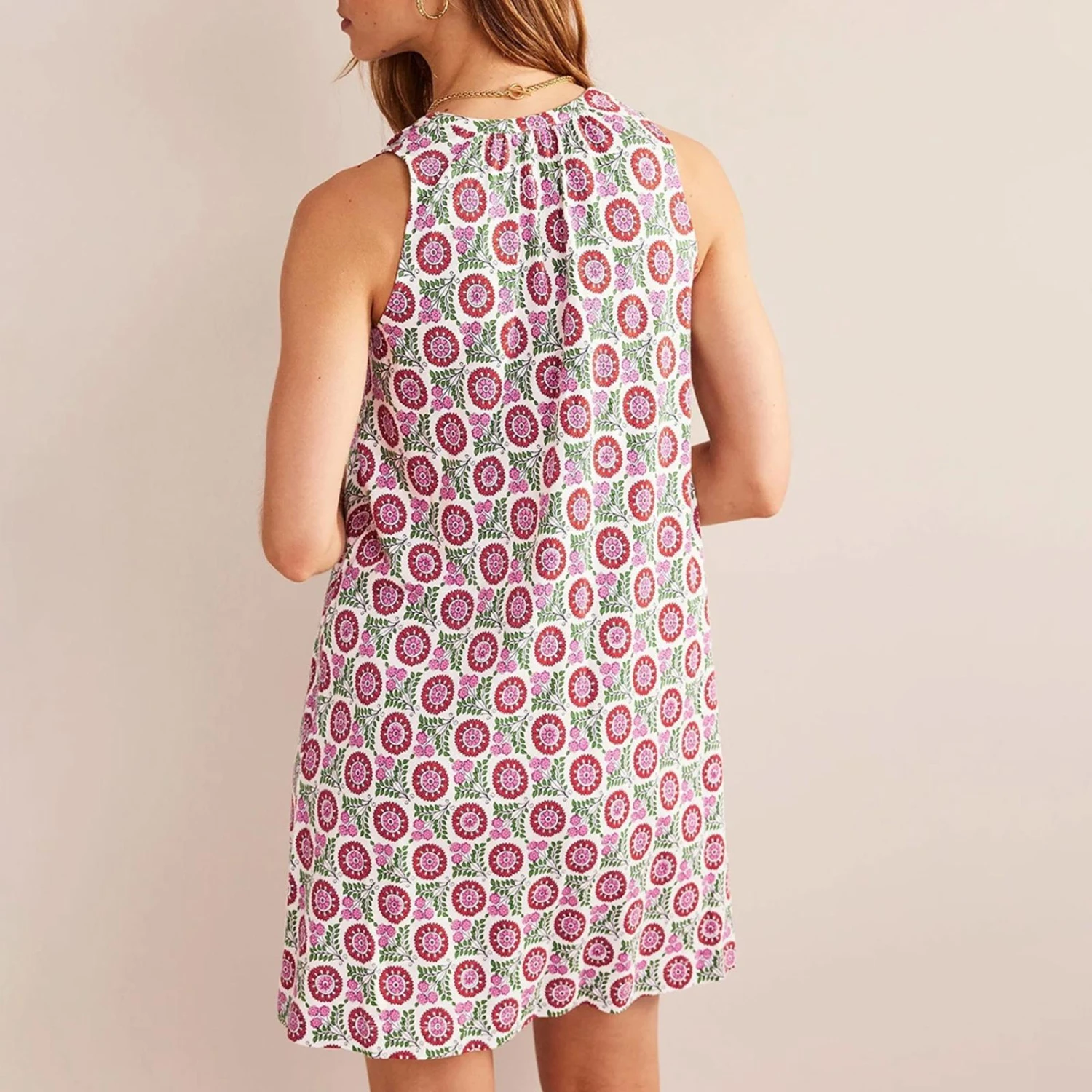 Boden Notch-Neck Jersey Dress-Gin Fizz, Sunflower Sprig
