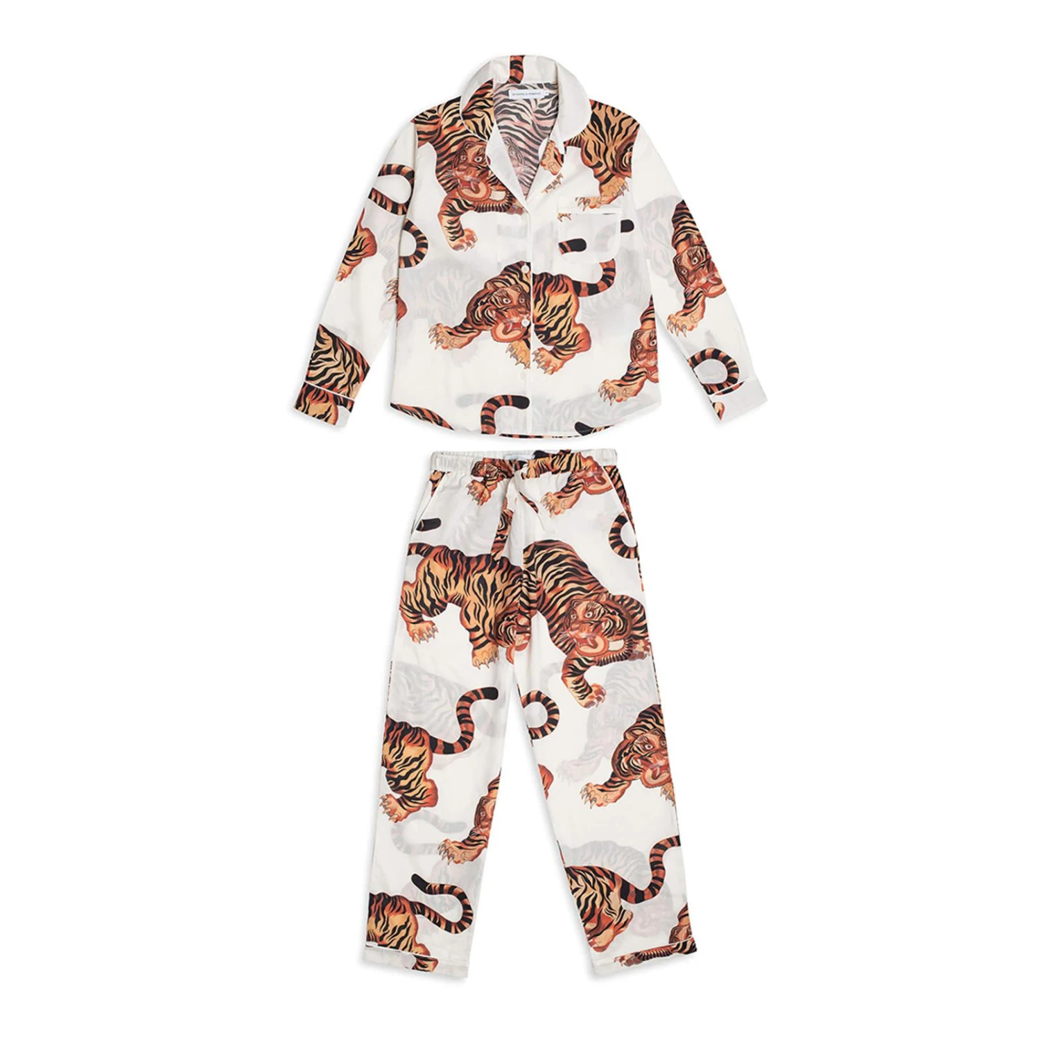 - The shirt is a little shorter than our signature style, featuring a sculpted hemline, buttoned cuffs and piping detail on the rounded lapels, pocket and cuff. The trousers have deep pockets for your treasures, elasticised waistbands with adjustable tie and gentle taperingColour: Cream