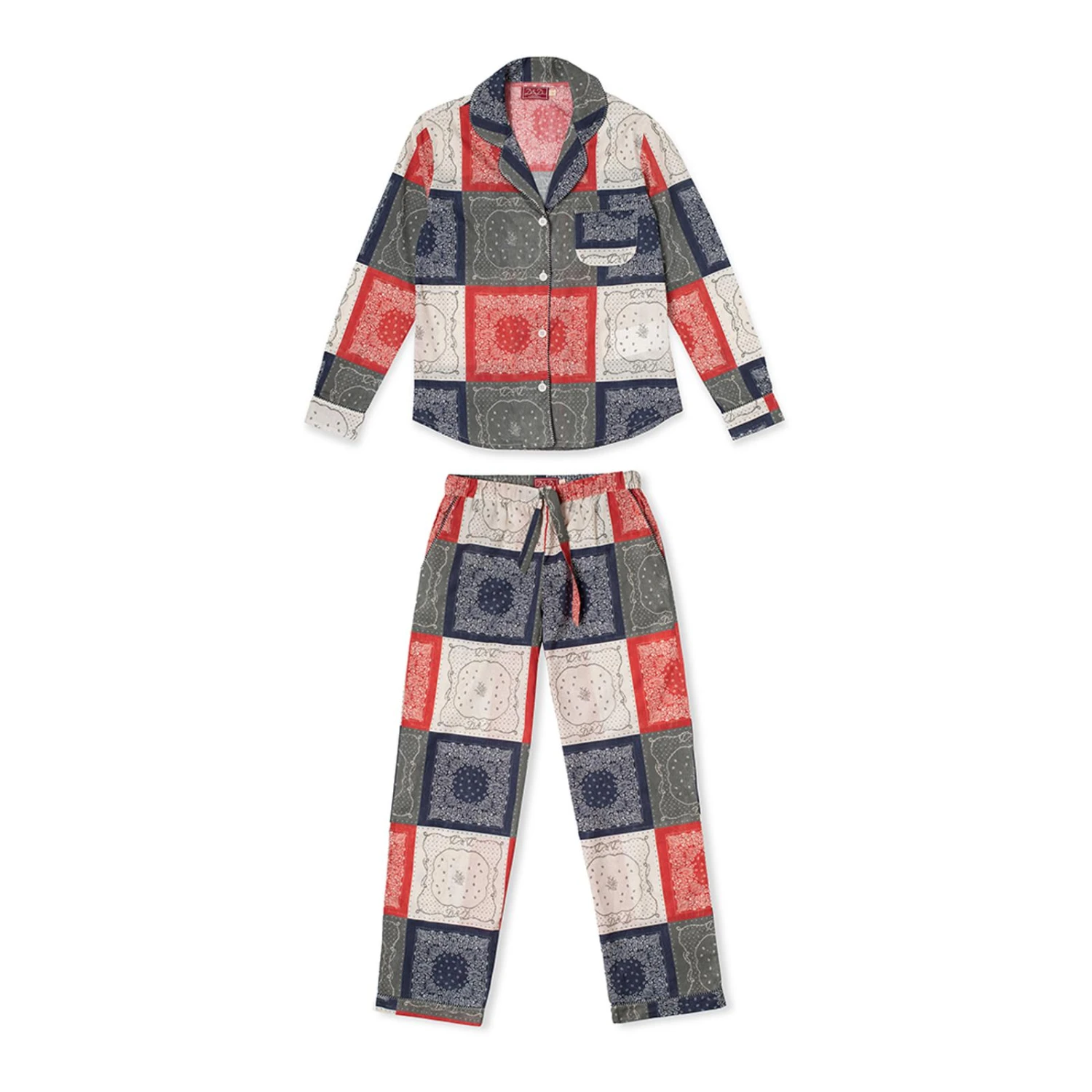 - Designed to resemble a patchwork of bandanas, this pajama set is made with organic cotton from a GOTS certified supply chain