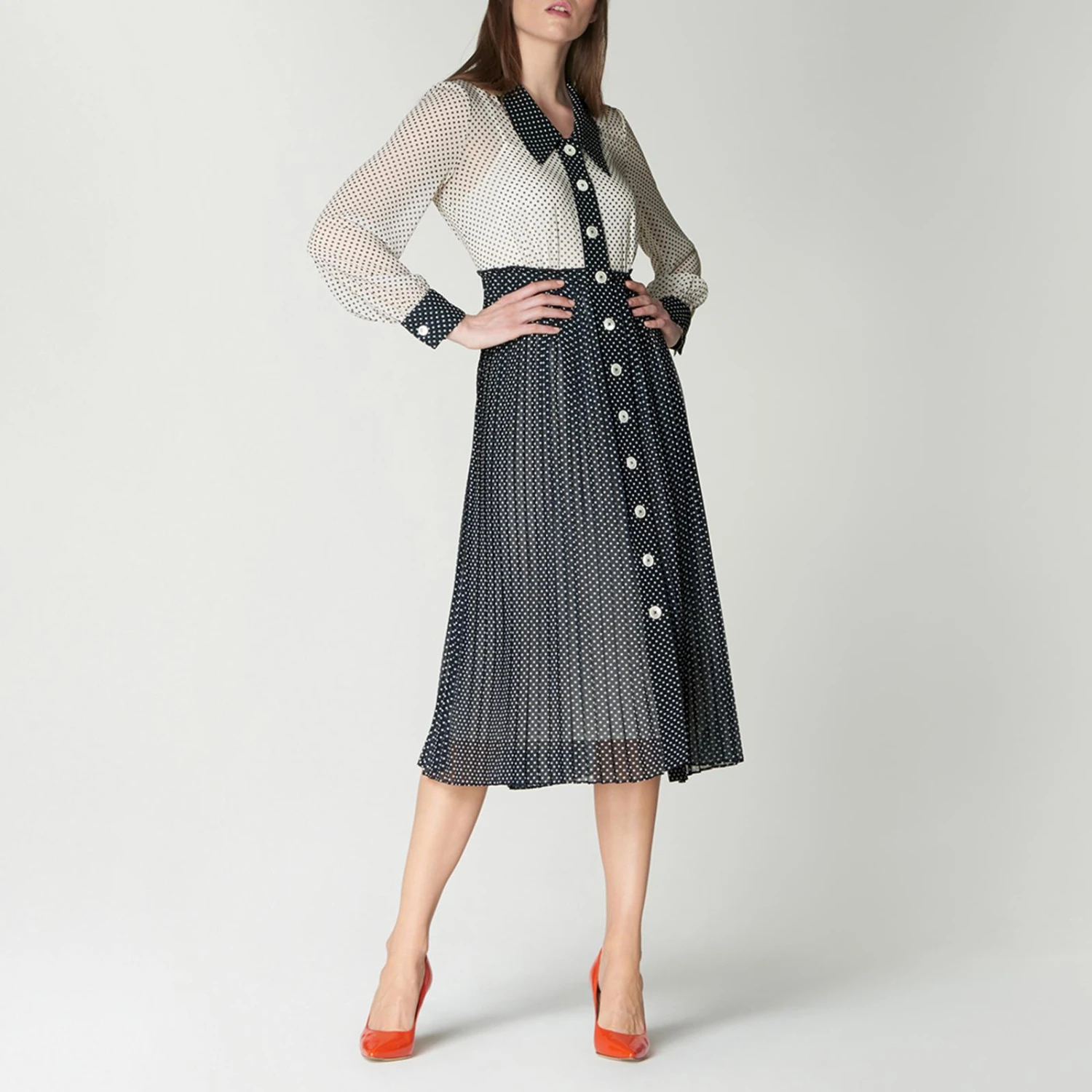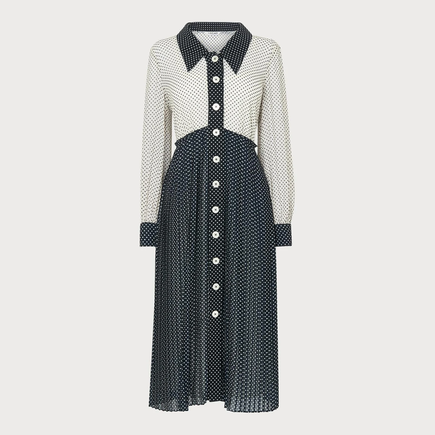 L K Bennett Navy Fozette Polka Dot Midi Shirt Dress