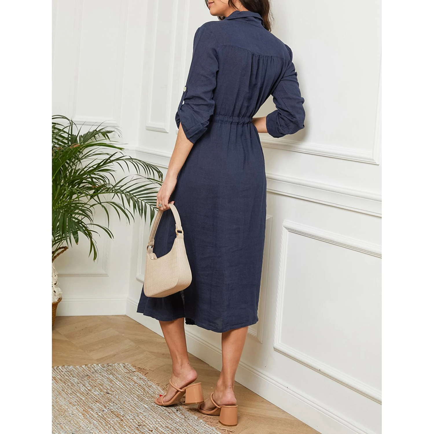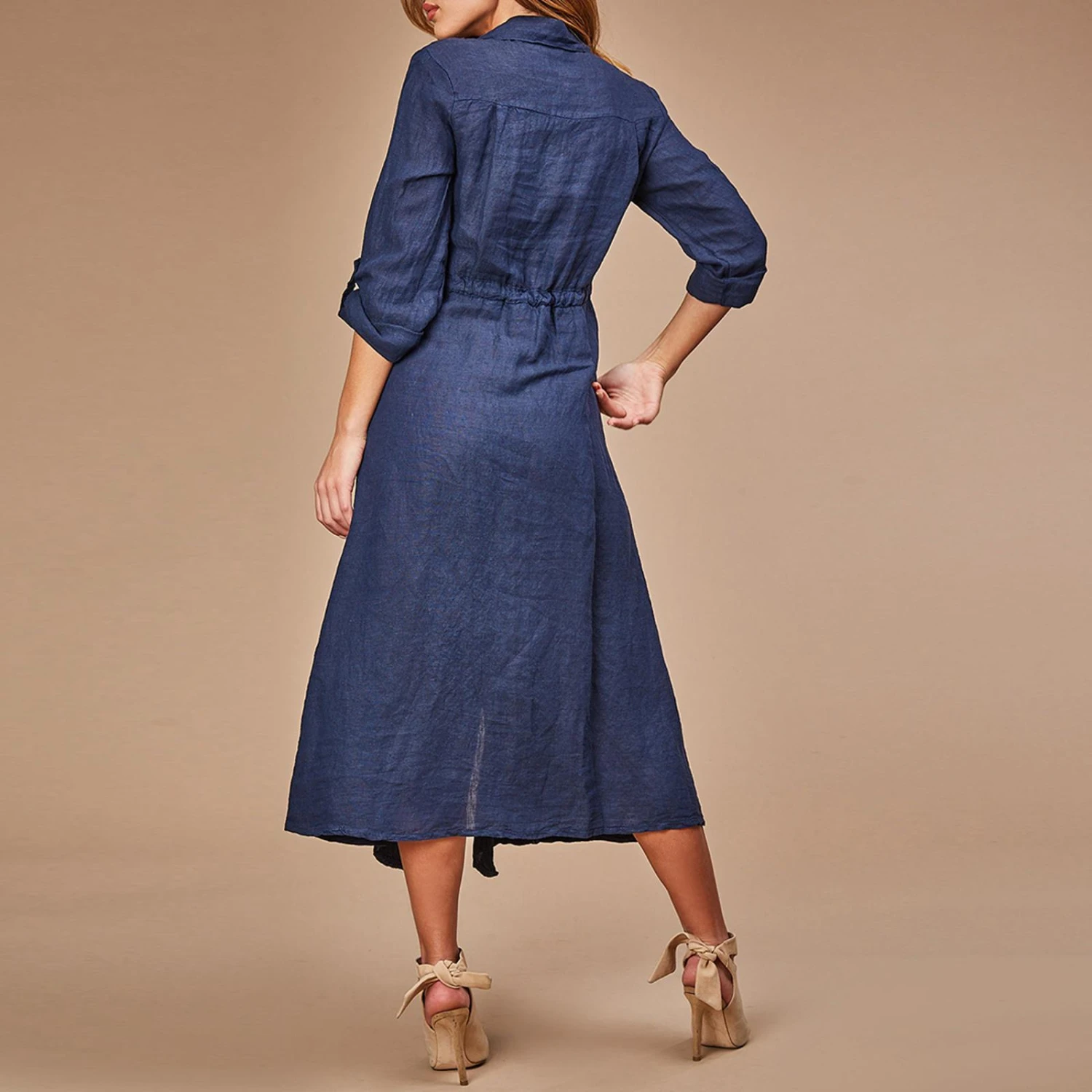 LE MONDE DU LIN Navy Maxi Linen Dress