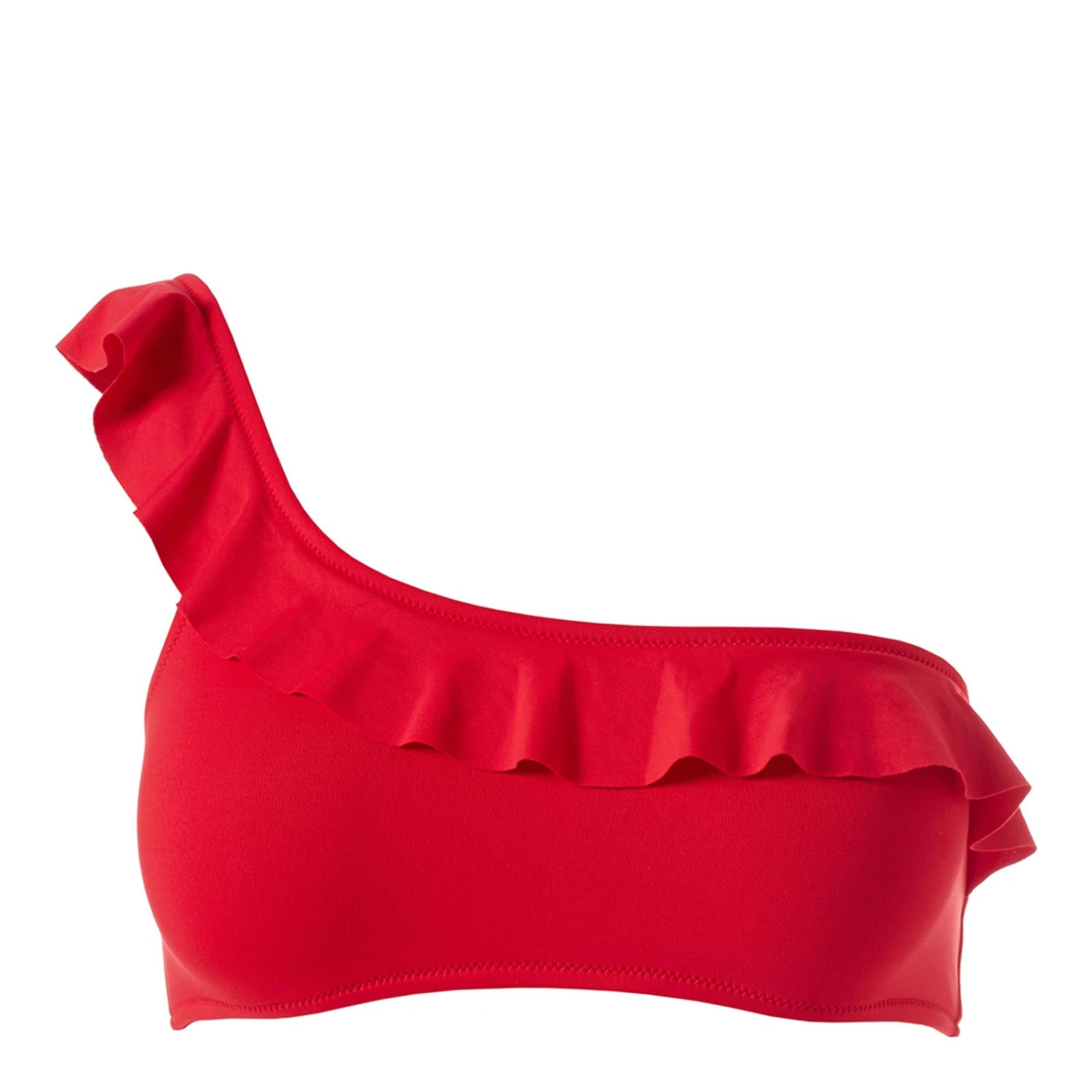 - Ruffled one-shoulder strap