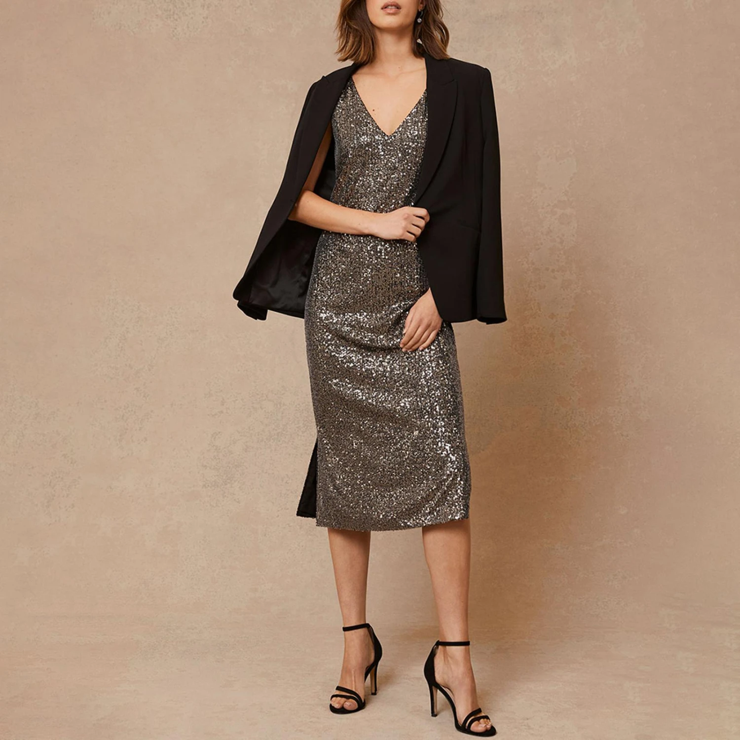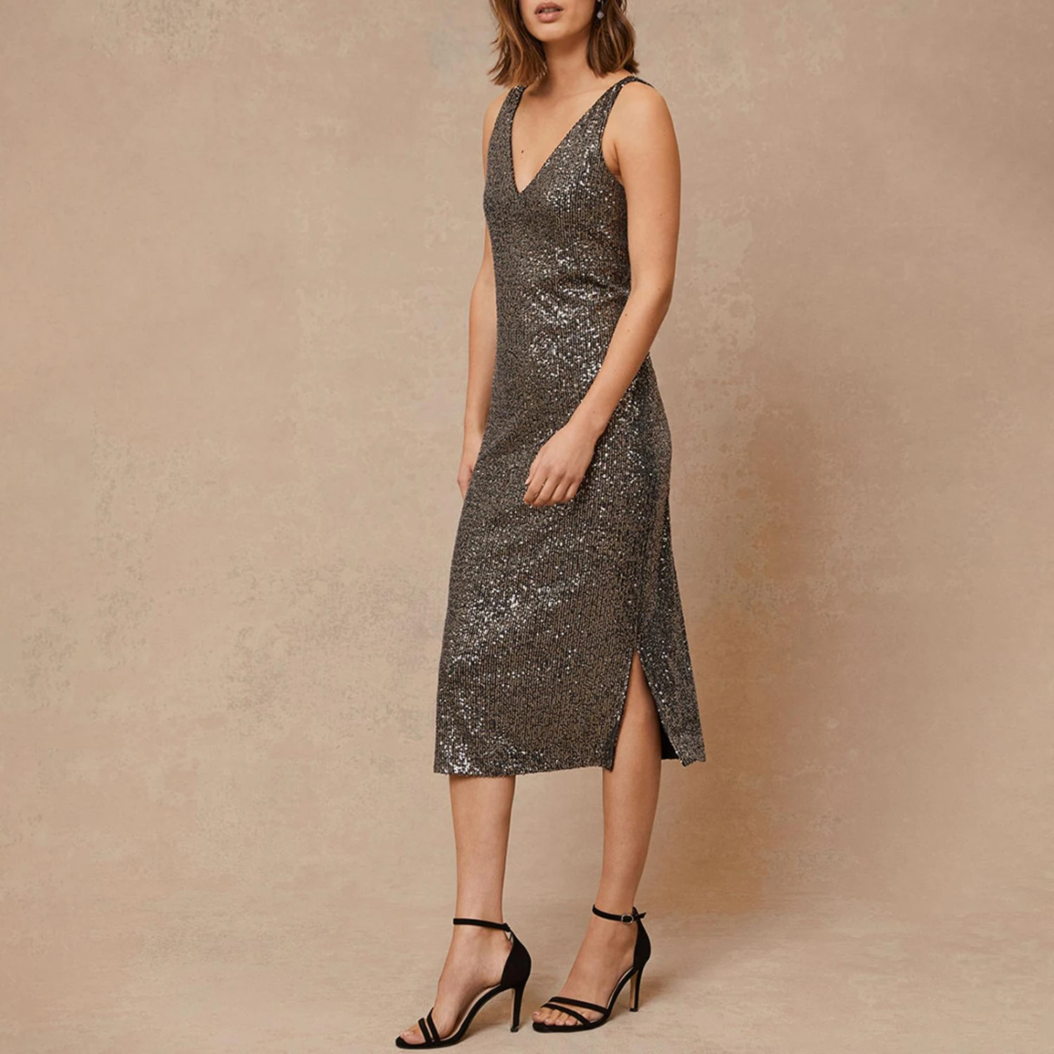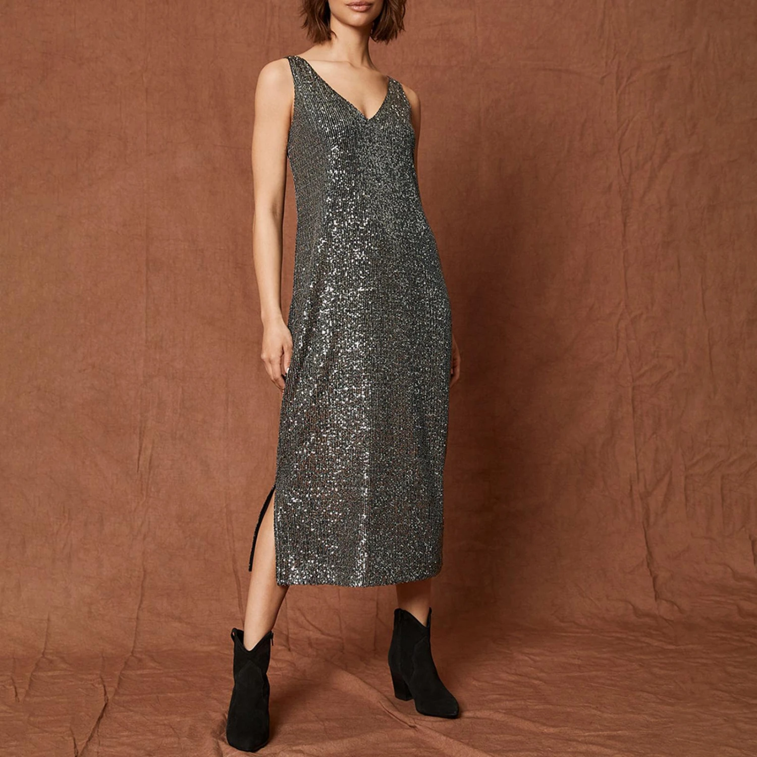 Mint Velvet Dark Silver Sequin Midi Dress