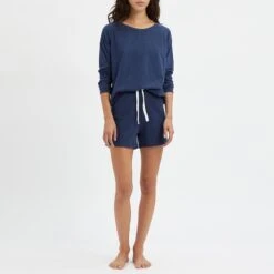 - Blue Marl Cotton Pyjama Short Set