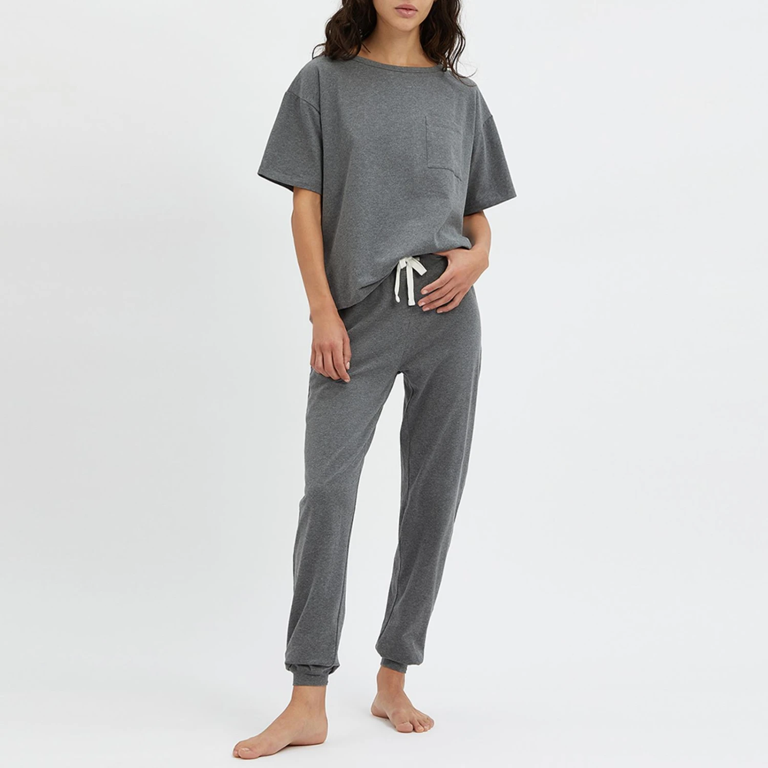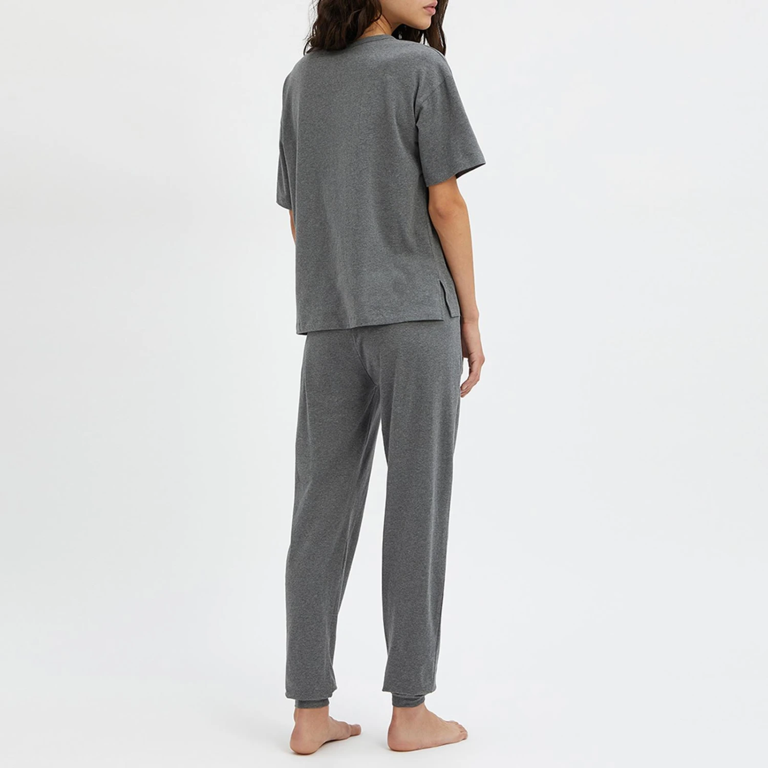 - Charcoal Marl Cotton Short Sleeve Pyjama Set