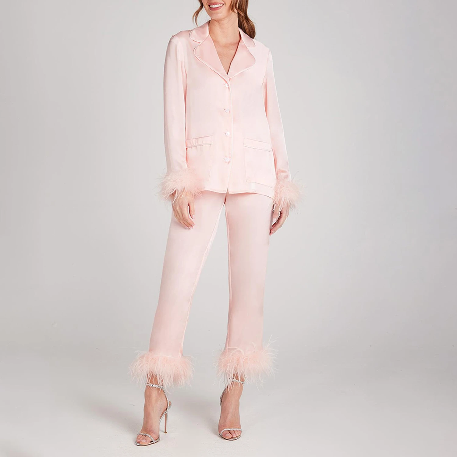 – Due to the feather detailing, these pyjamas are suitable for gentle dry clean or gentle hand wash only