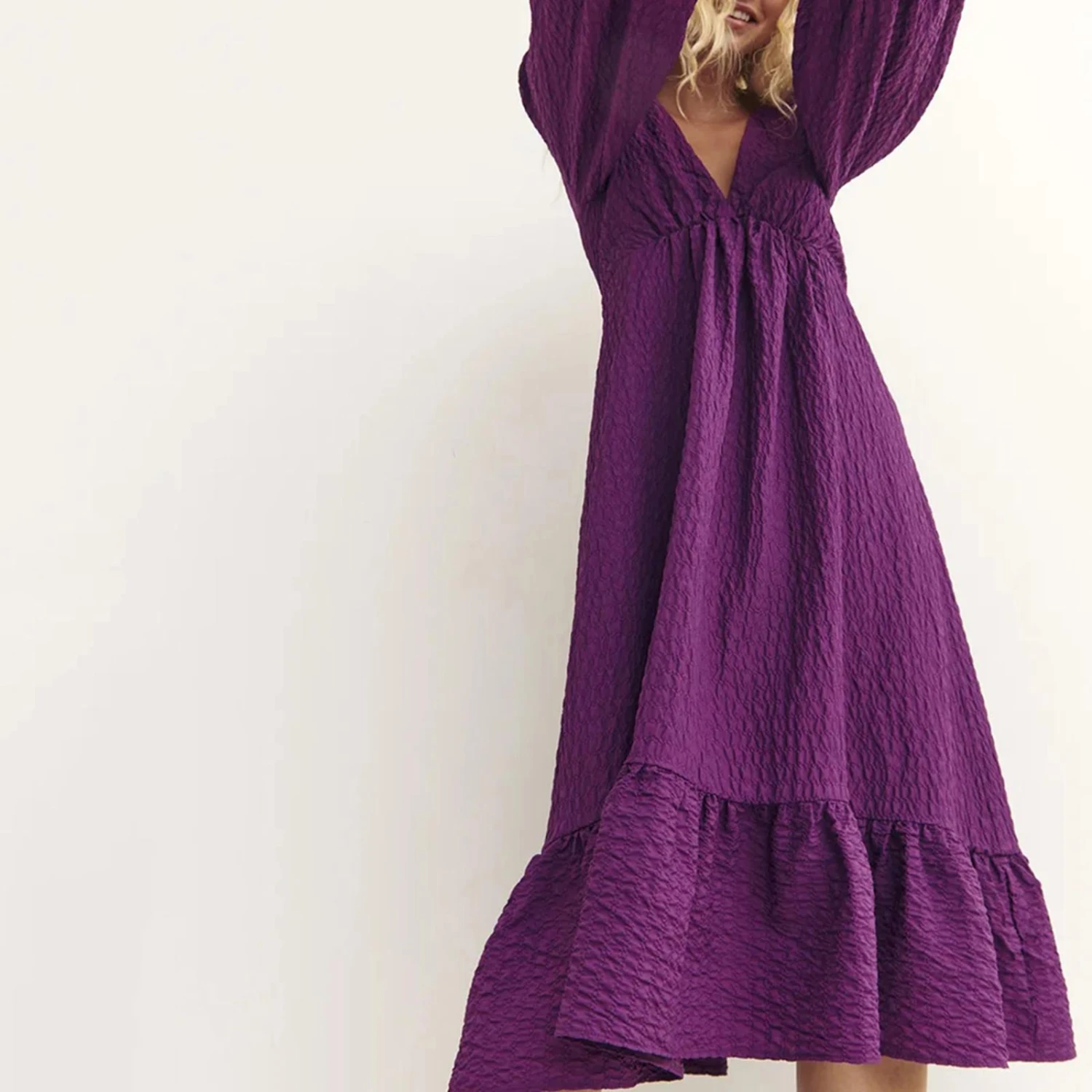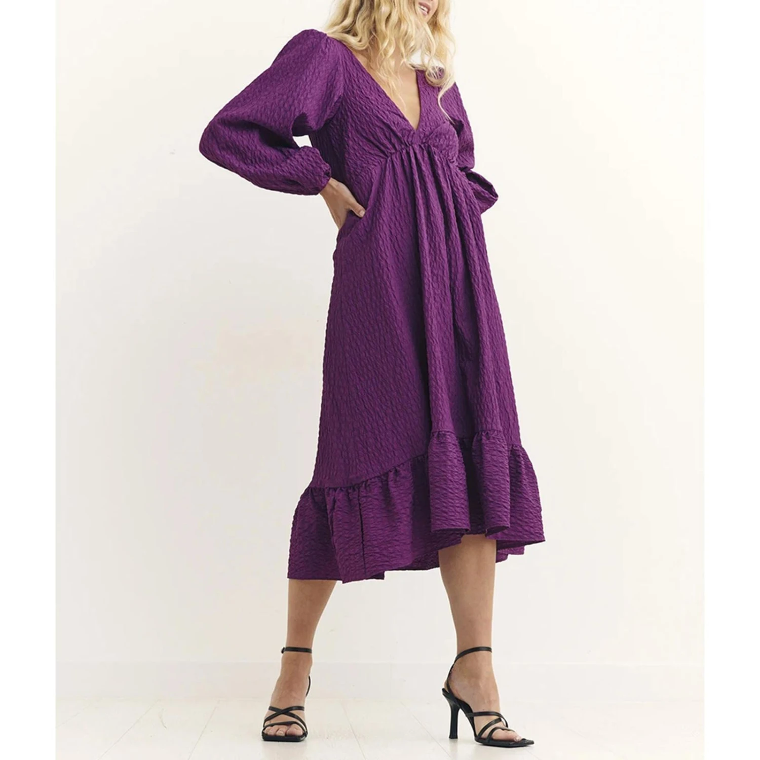 Nobody’s Child Purple Ammie Long Sleeve Midi Dress
