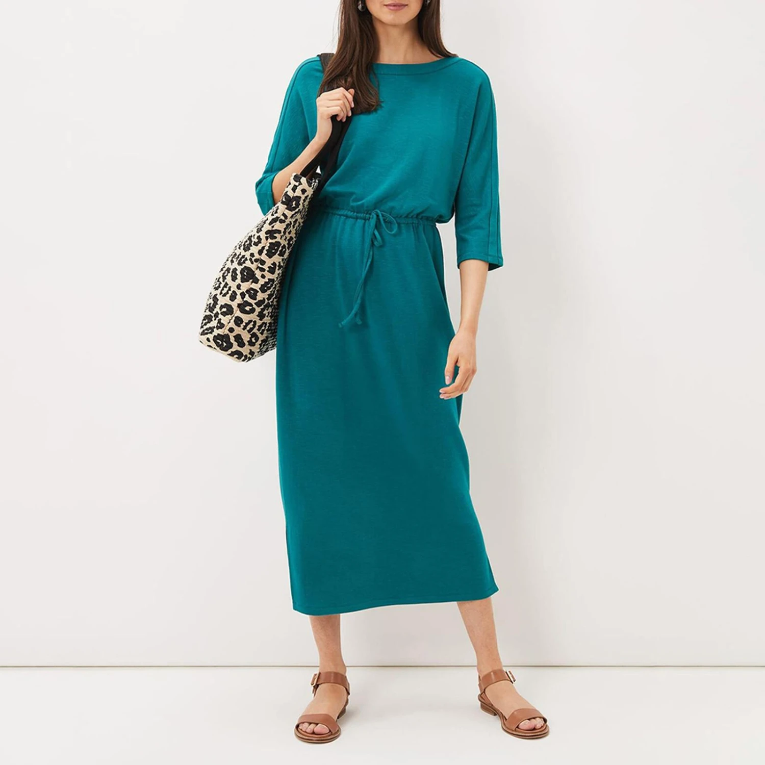Phase Eight Teal Belle Tie Waist Cotton Blend Dress