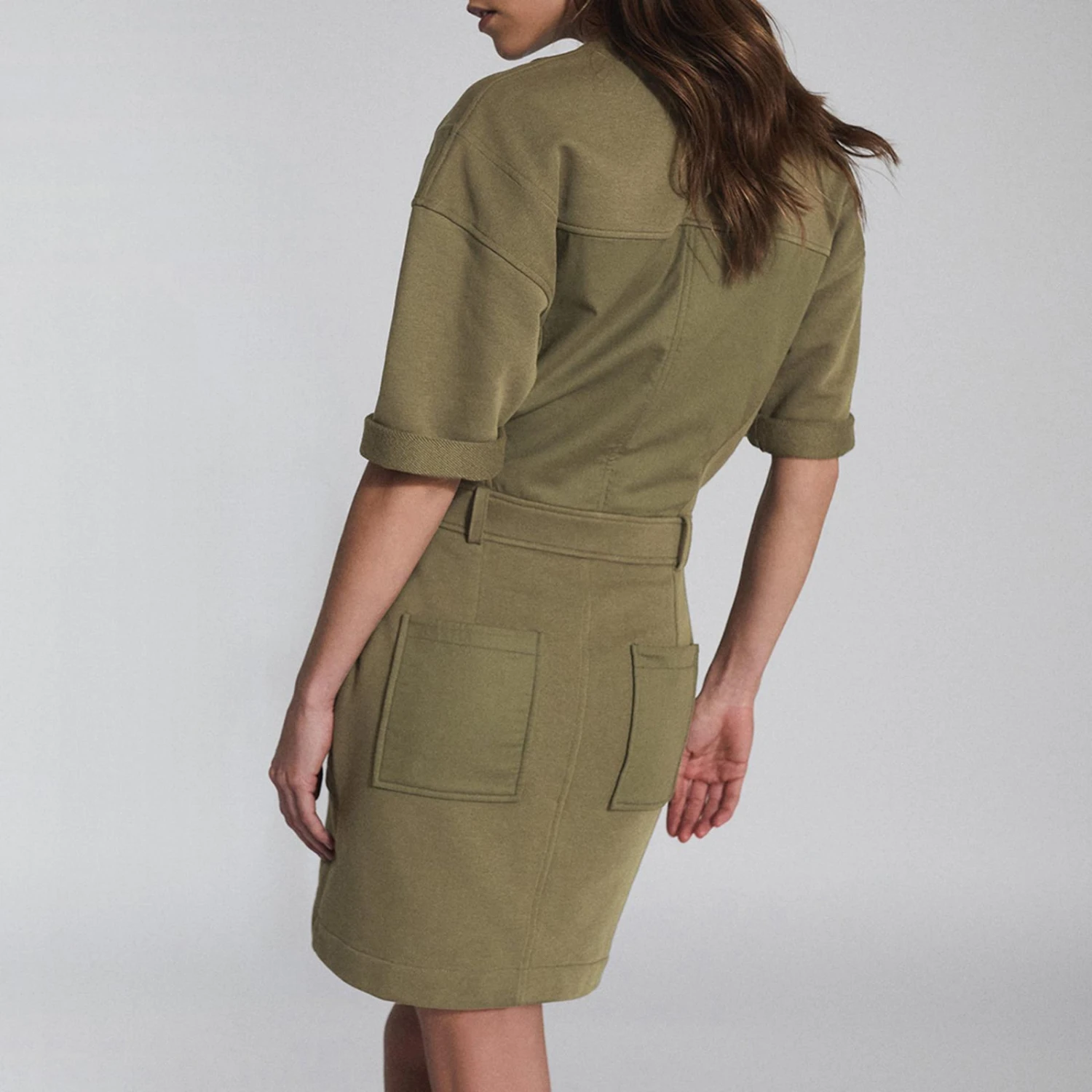 Reiss Khaki Emlyn Casual Cotton Blend Dress