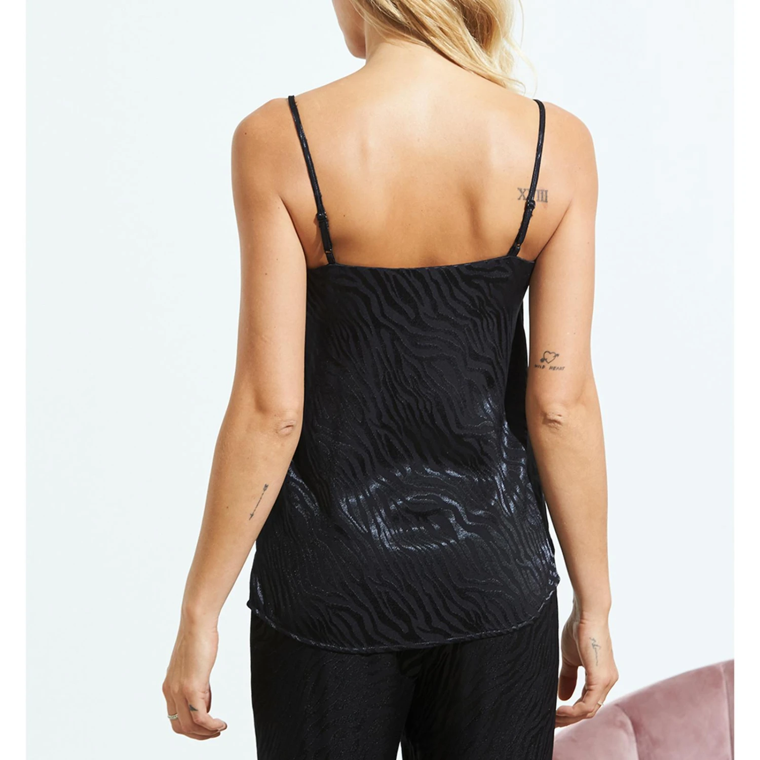 SOSANDAR Black Zebra Jacquard Silky Pyjama Cami