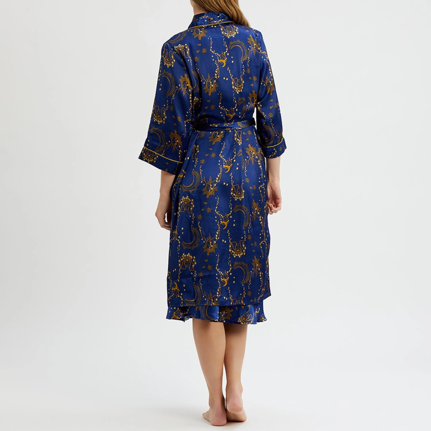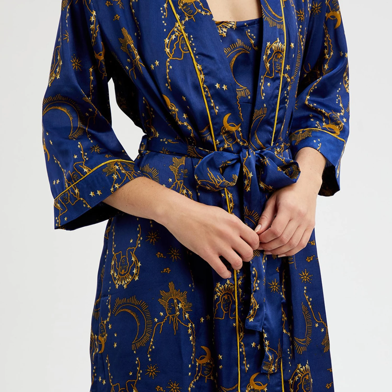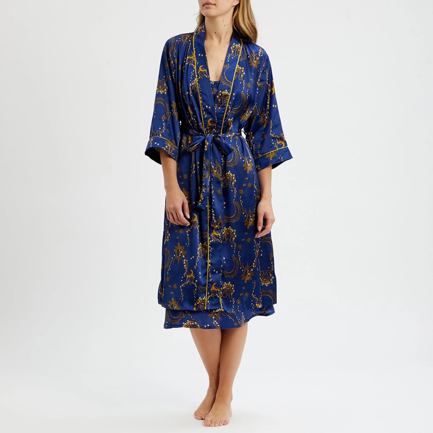 - Topped with piping around the sleeves and neckline, it’s perfect for wrapping yourself up inColour: Blue