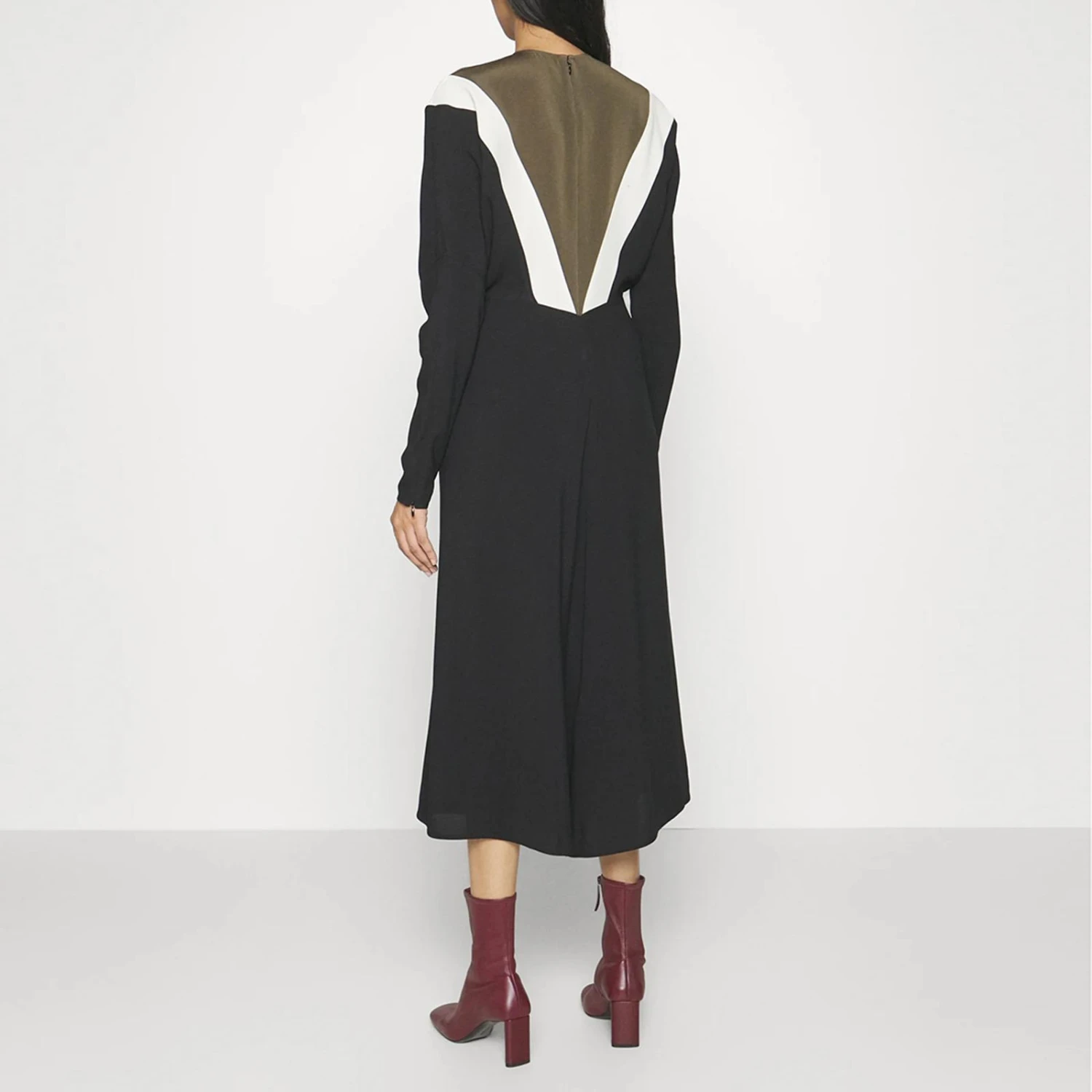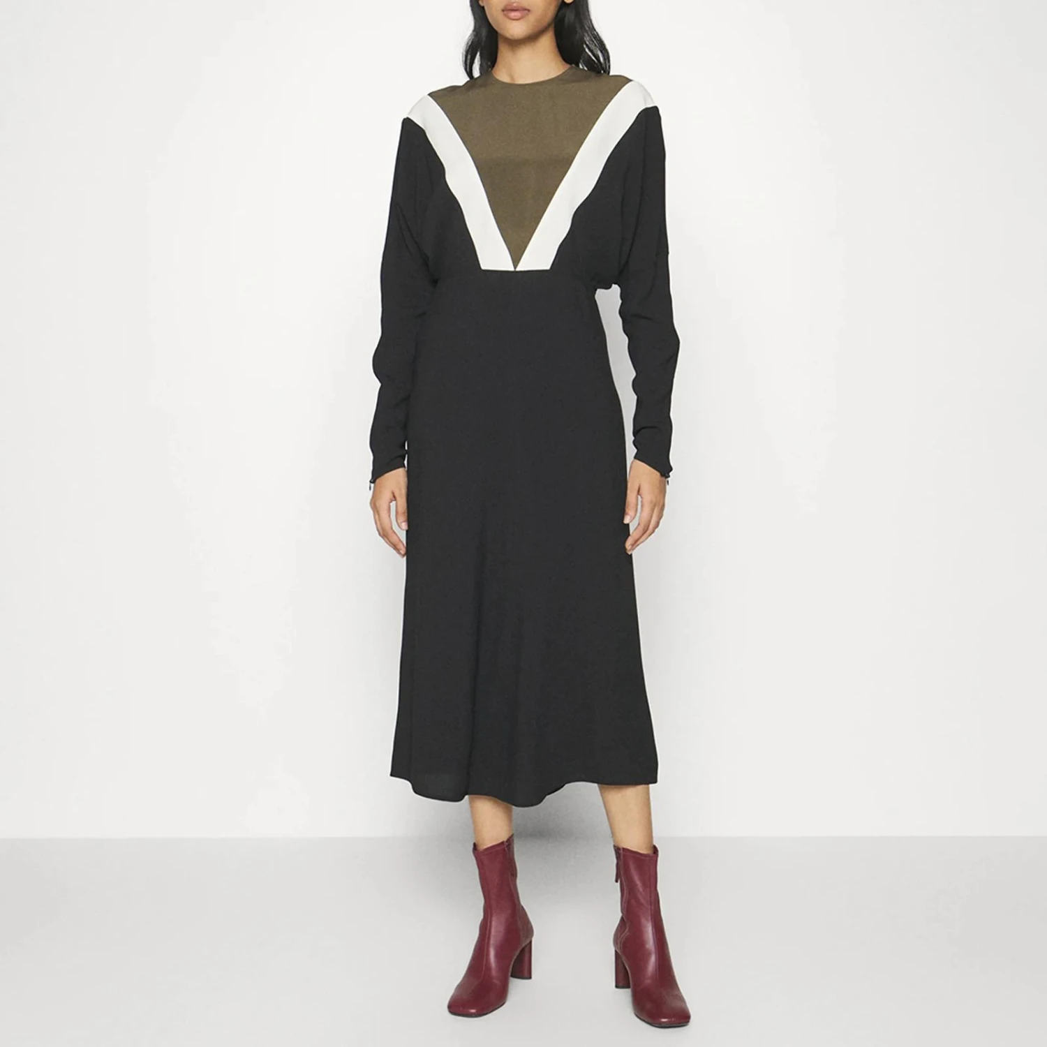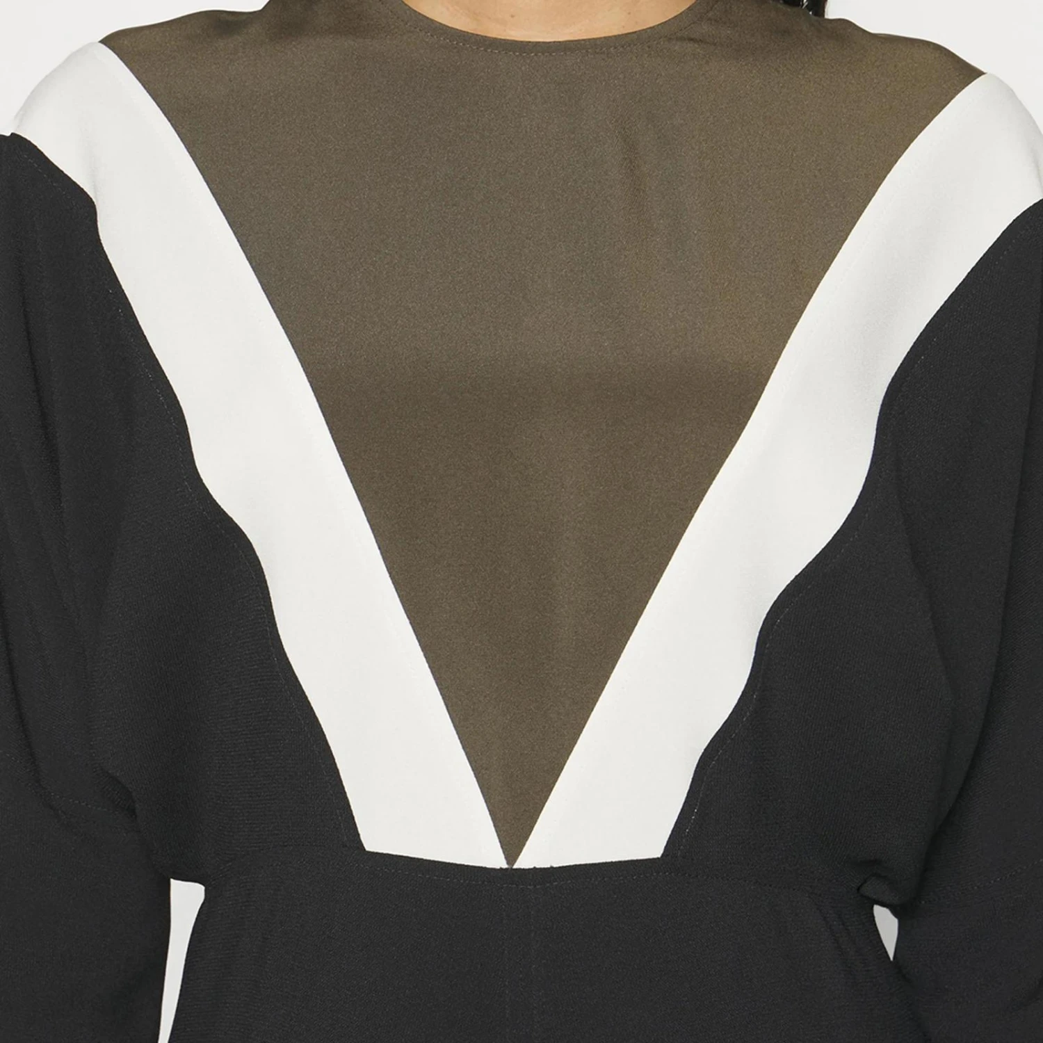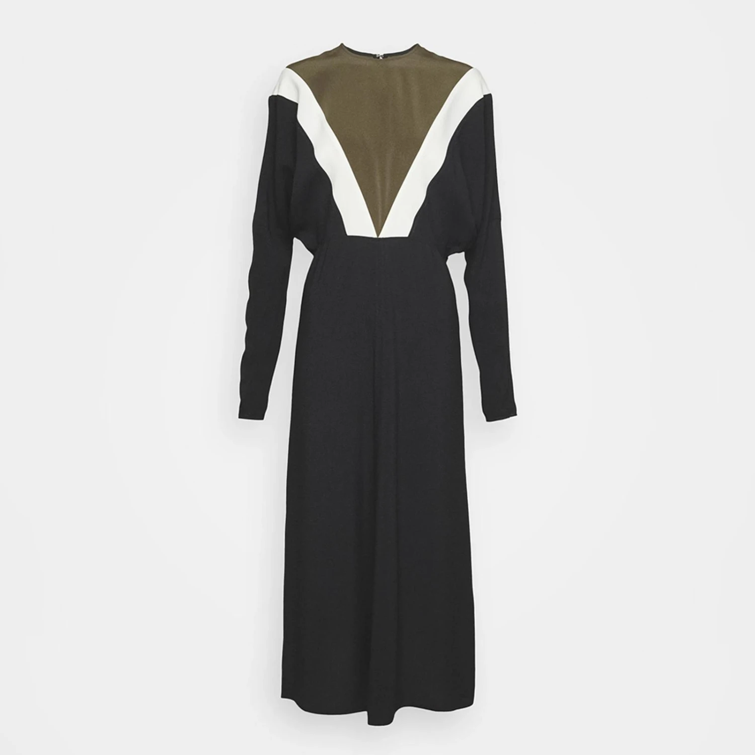 Victoria Beckham Black/Khaki Chevron Detail Dolman Dress