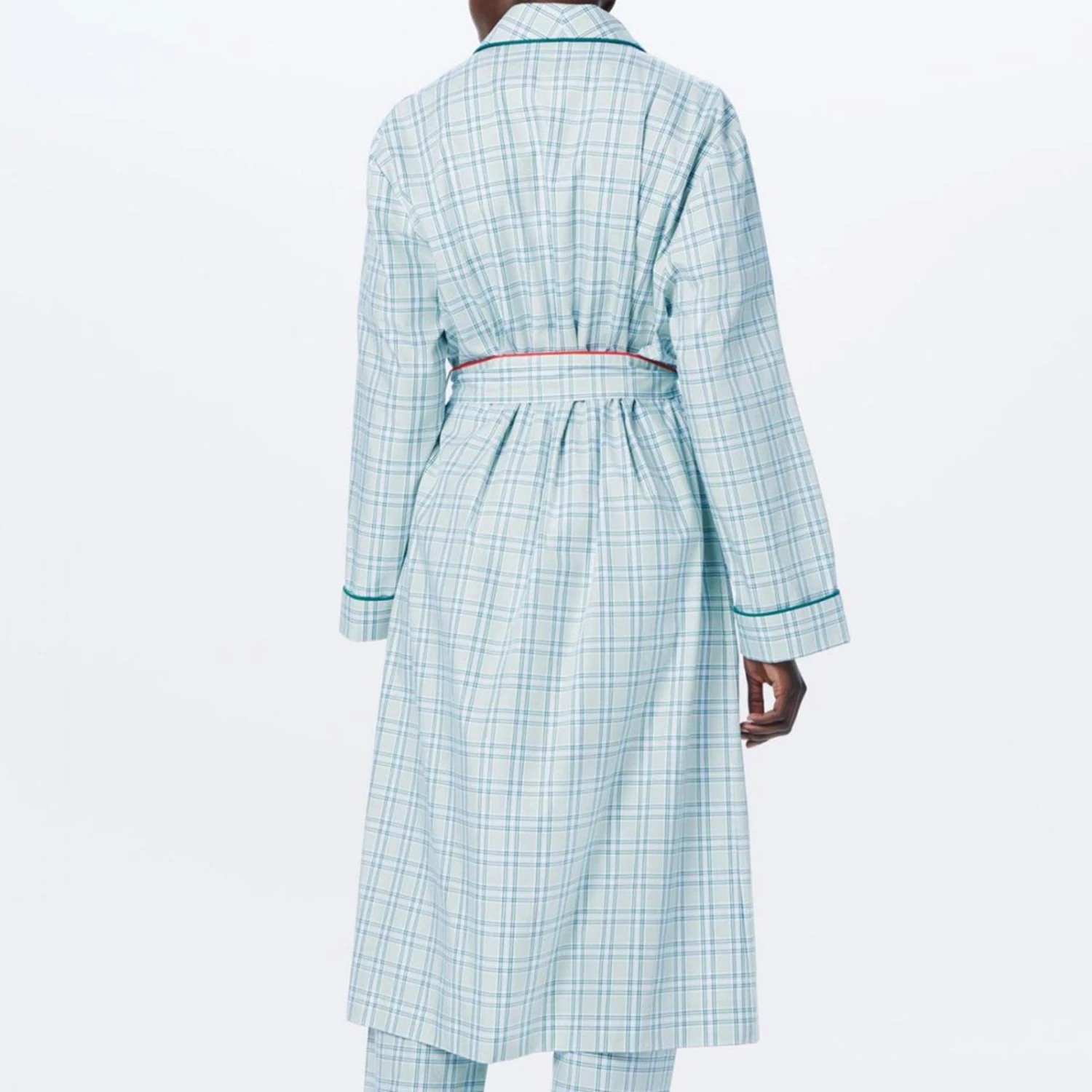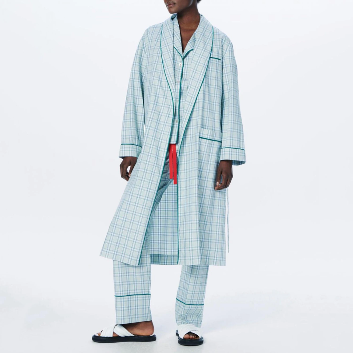 Victoria Beckham Mint Green Checked Nightwear Cotton Robe