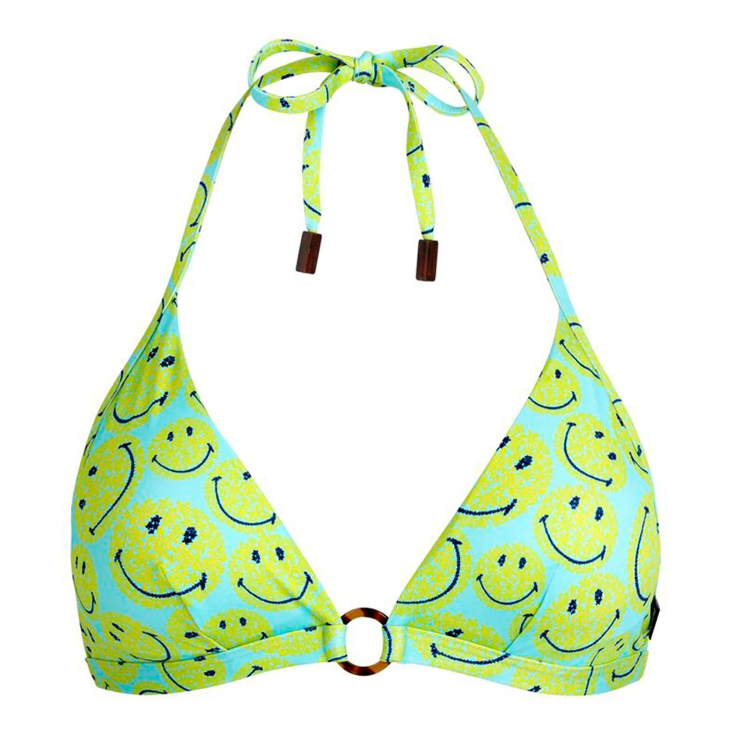 - Womens’ Halter Bikini Top With Smiley Print In Blue And Green