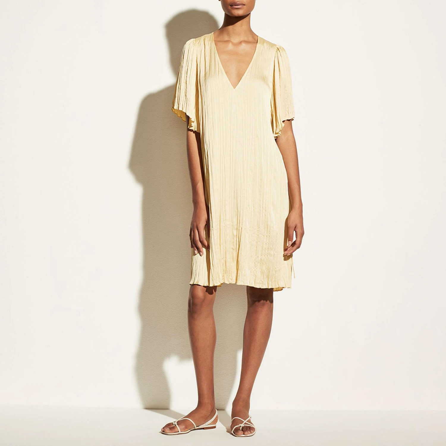 Vince Beige Satin Flutter Sleeve Dress