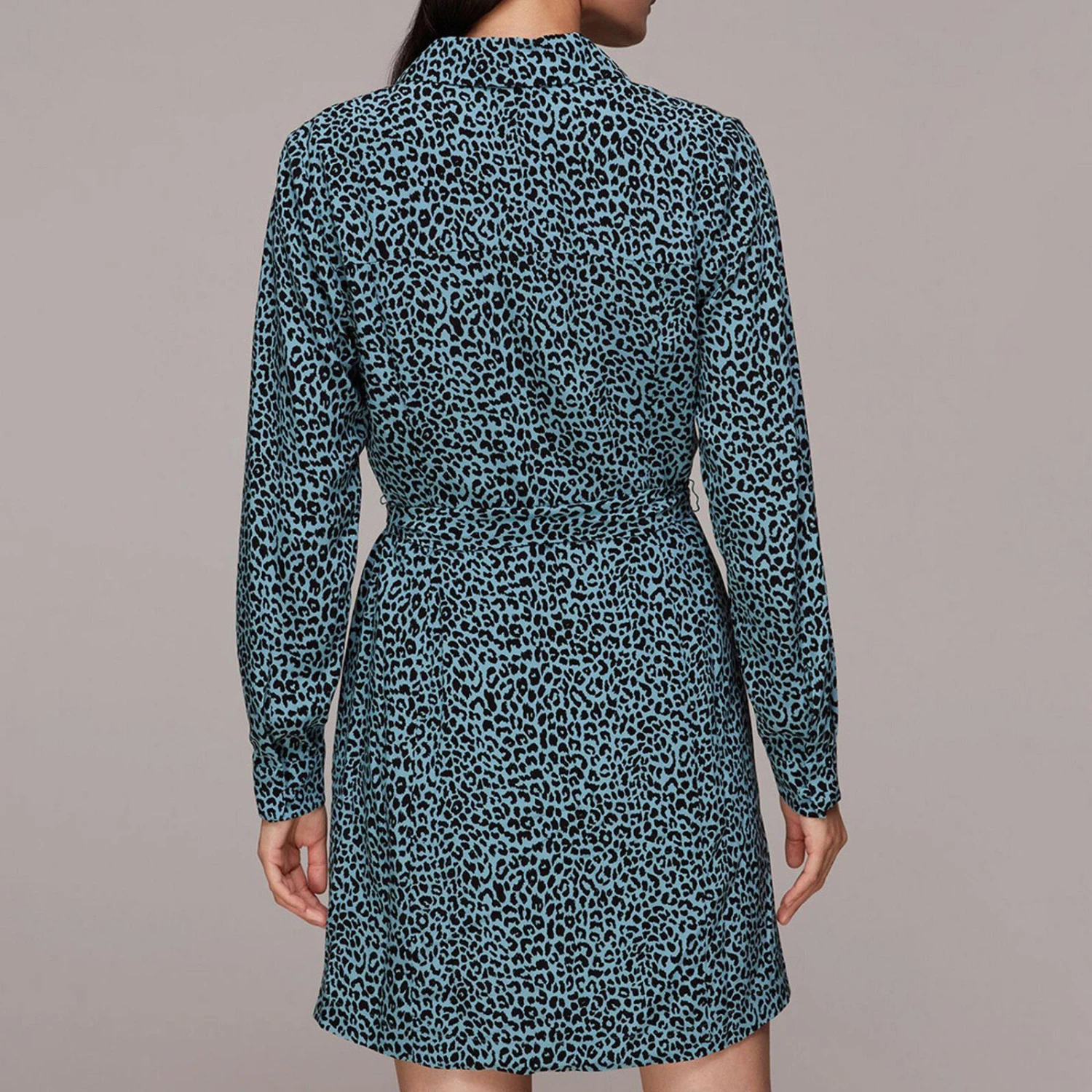 WHISTLES Blue Contrast Leopard Belted Dress
