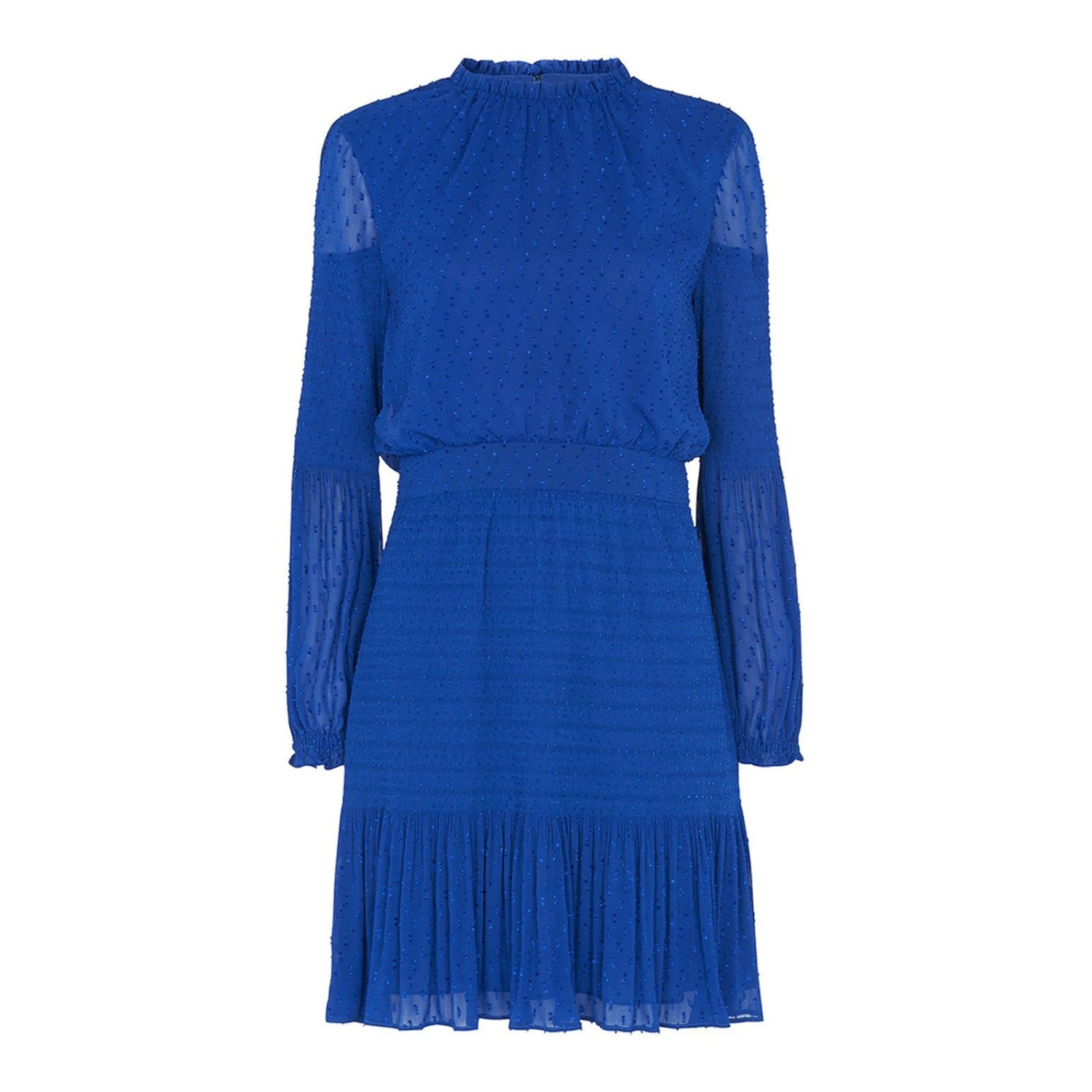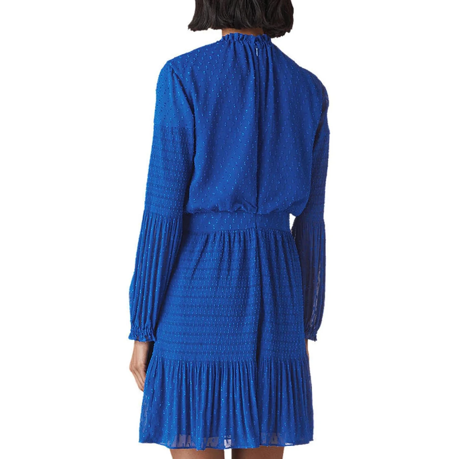 WHISTLES Blue Oriel Dobby Pleated Dress
