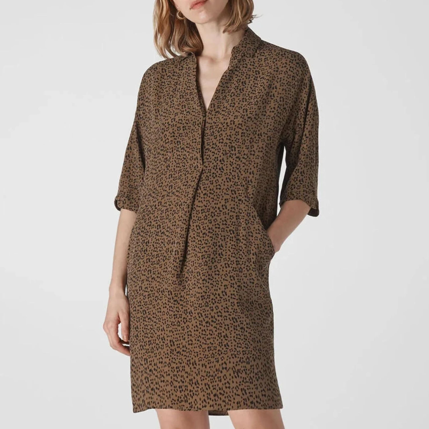 WHISTLES Brown Animal Print Lola Dress